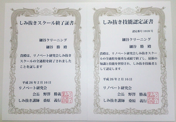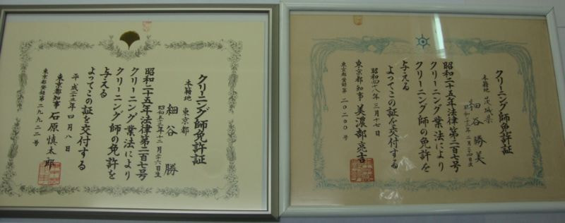 細谷クリーニングでは国家資格者が在中しておりドライクリーニング、水洗い、Wクリーニング、染み抜き、仕上げなど衣類に関しての適切なアドバイスや相談を丁寧に行います。